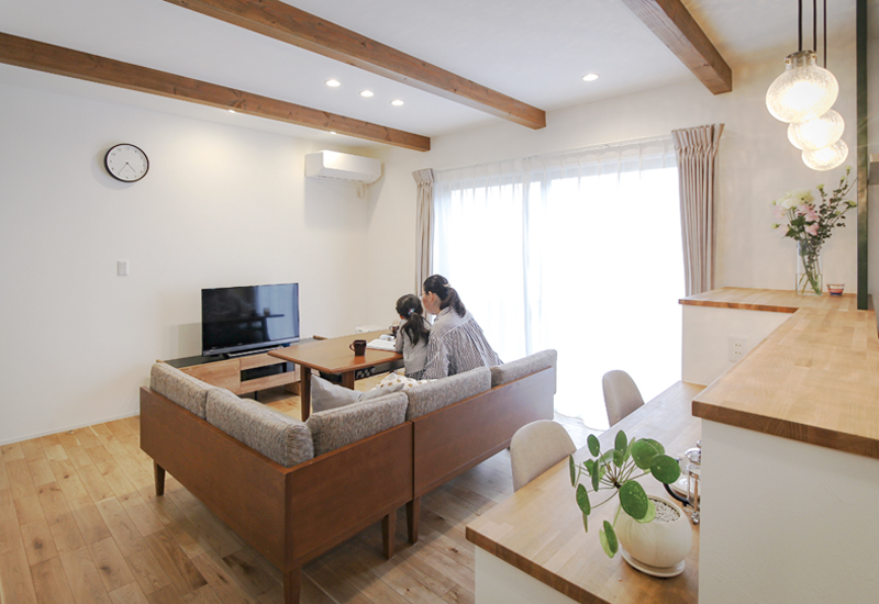 リビング空間をダイニング兼用にして、ゆとりを創出。